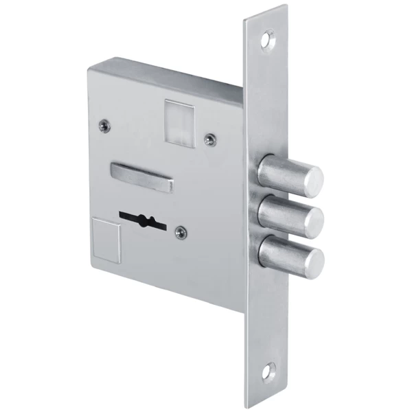 Плоскосувальдный, размещение сувалд в 2-х касетах (6 шт.) 3-х ригельный засов, диаметр ригелей - 12 мм, вылет засова 22 мм за 2 оборота, толщина корпуса 21 мм, 5 ключей в комплекте.
