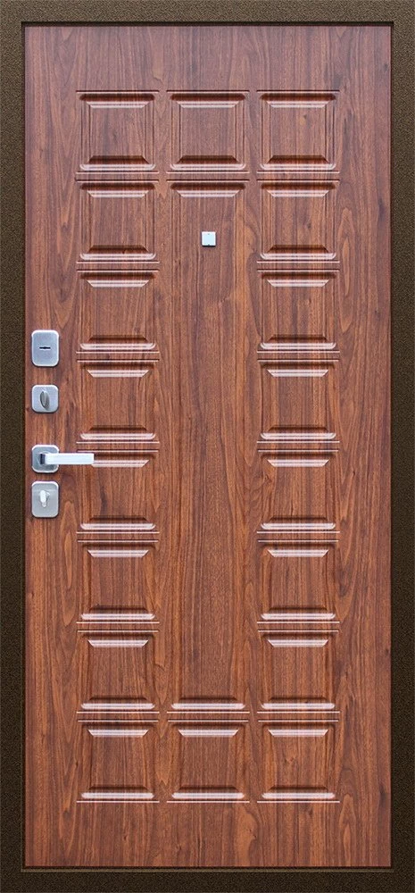 Надежная входная Дверь Спартак Орех темный премиум класса по цене 33 899 руб. Большая толщина стали защитит от проникновения в ваш дом, квартиру или коттедж. Используется очень качественная фурнитура: замки, цилиндры, ручки, защелки. Покрытие и отделка двери изготовлено под внимательным контролем производителя. Дверь имеет долгий срок службы и гарантию.