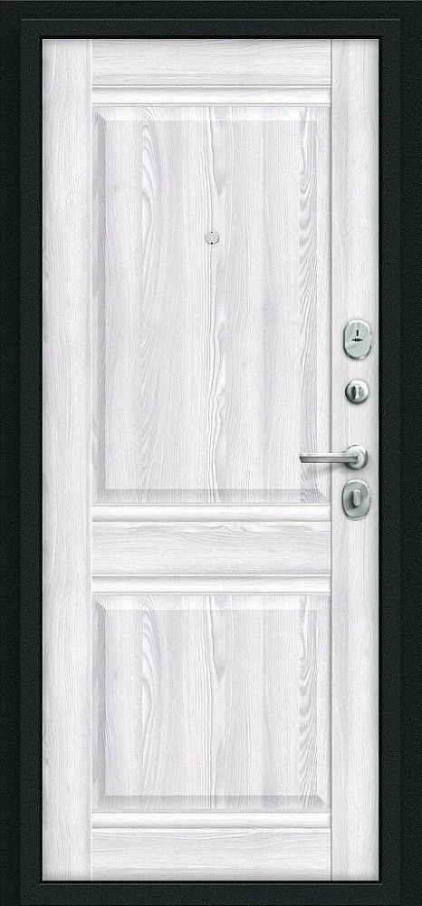 Надежная входная Дверь Браво Некст Kale Букле черное/Riviera Ice премиум класса по цене 35 549 руб. Большая толщина стали защитит от проникновения в ваш дом, квартиру или коттедж. Используется очень качественная фурнитура: замки, цилиндры, ручки, защелки. Покрытие и отделка двери изготовлено под внимательным контролем производителя. Дверь имеет долгий срок службы и гарантию.