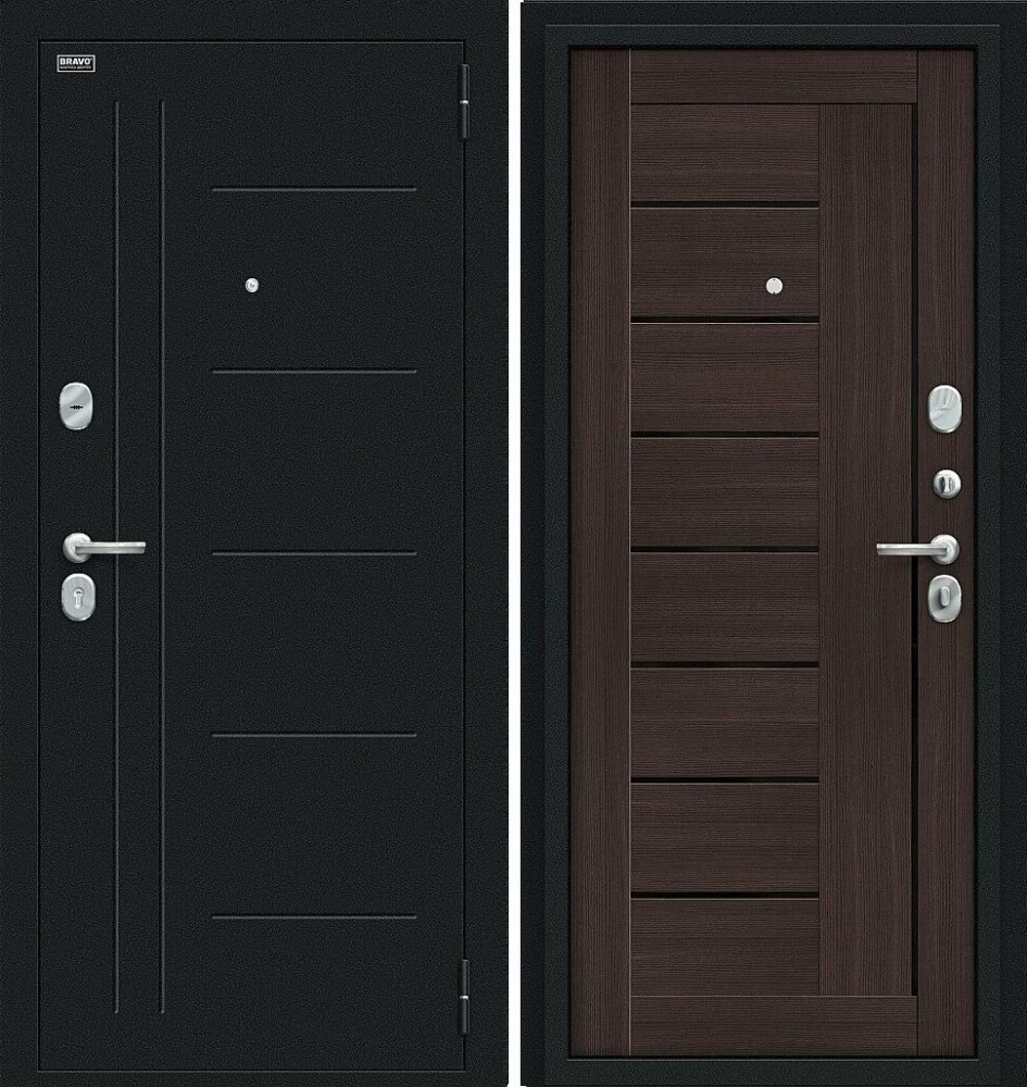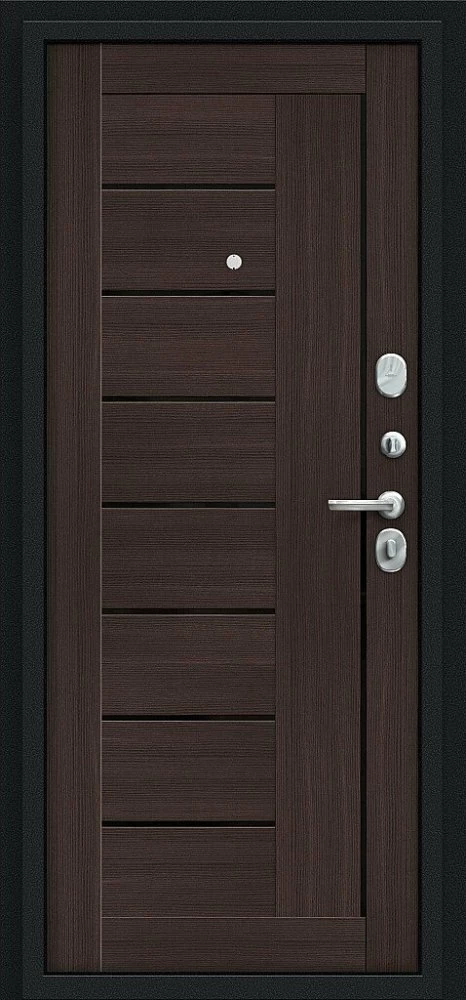 Надежная входная Дверь Браво Проф Букле черное/Wenge Veralinga премиум класса по цене 32 799 руб. Большая толщина стали защитит от проникновения в ваш дом, квартиру или коттедж. Используется очень качественная фурнитура: замки, цилиндры, ручки, защелки. Покрытие и отделка двери изготовлено под внимательным контролем производителя. Дверь имеет долгий срок службы и гарантию.